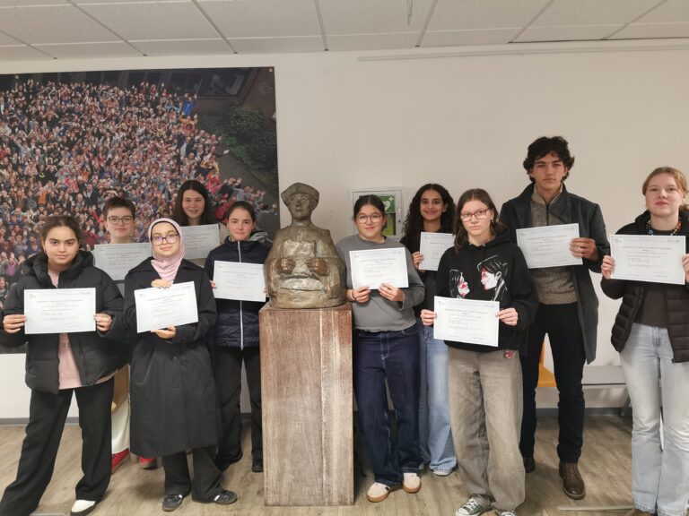 Freudig entgegengenommen haben 11 Schüler*innen der Jahrgangsstufen 9 und EF ihr DELF-Diplom! Sie haben im Juni 2024 erfolgreich an der DELF-Prüfung teilgenommen und dafür Anfang Dezember die vom französischen Bildungsministerium ausgestellten Zeugnisse erhalten.