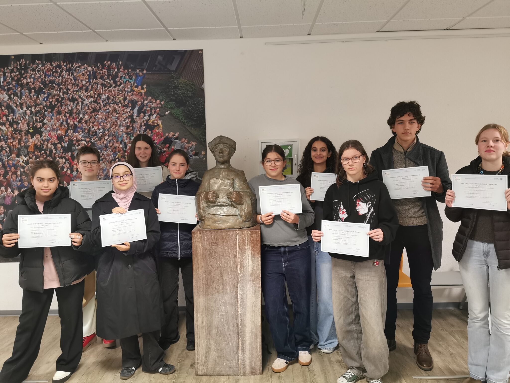 Wir gratulieren allen Prüflingen ganz herzlich zum bestandenen DELF-Diplom und freuen uns, dass die Prüfung auch in diesem Jahr wieder von vielen Französischlernenden außerhalb des Unterrichts abgelegt und erfolgreich absolviert wurde.